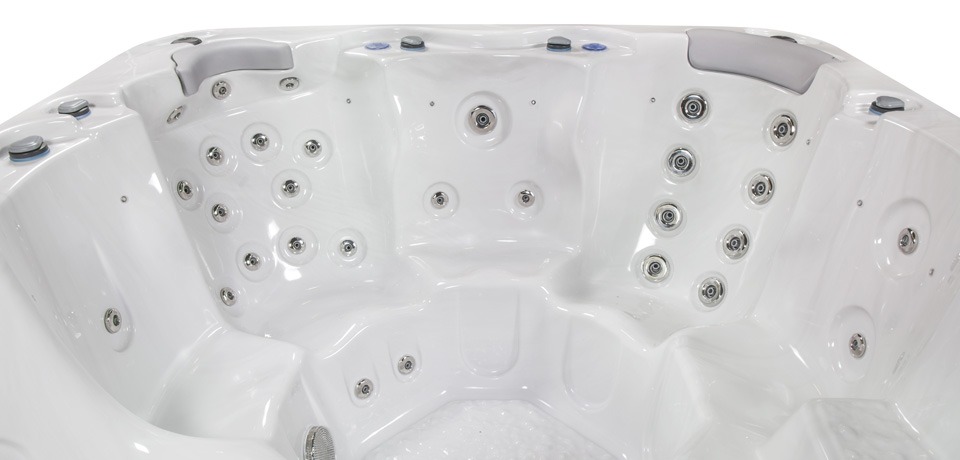 The Jupiter hot tub has ergonomically designed seats, 46 massage jets, and a Bluetooth sound system with two speakers. The spacious corner seat with neck and shoulder massage will be a favourite for all members of the family.