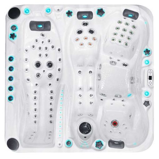 The Euphoria Spa combines the most innovative spa massage ever developed with a 4-person configuration that provides multiple types of invigorating massage. The Levitation Bed™ was developed by The Hottubwarehouse and allows the user to lie face down or face up on the massage bed for a head-to-toe massage on both the front and back of the body. The Euphoria also features a comfortable lounge and bucket seats, creating a plethora of seating and massage experiences, like Aqua Rolling Massage™, Therapy Wave Zone™, Intense Therapy Zone™ and Waterfall Massage™. The 100+ jets allow you to target any part of your body with an invigorating massage, and jet pressure can be controlled throughout the spa. The Euphoria includes our exclusive Synergy Water Maintenance System as well as the full line-up of standard features offered in our Signature Spa Collection.