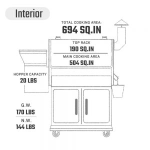 Rugged Exterior: Built with solid steel construction, this is a pellet grill you can grill on for years to come. The high-temperature powder coat finish keeps the grill’s surface polished and new over time.